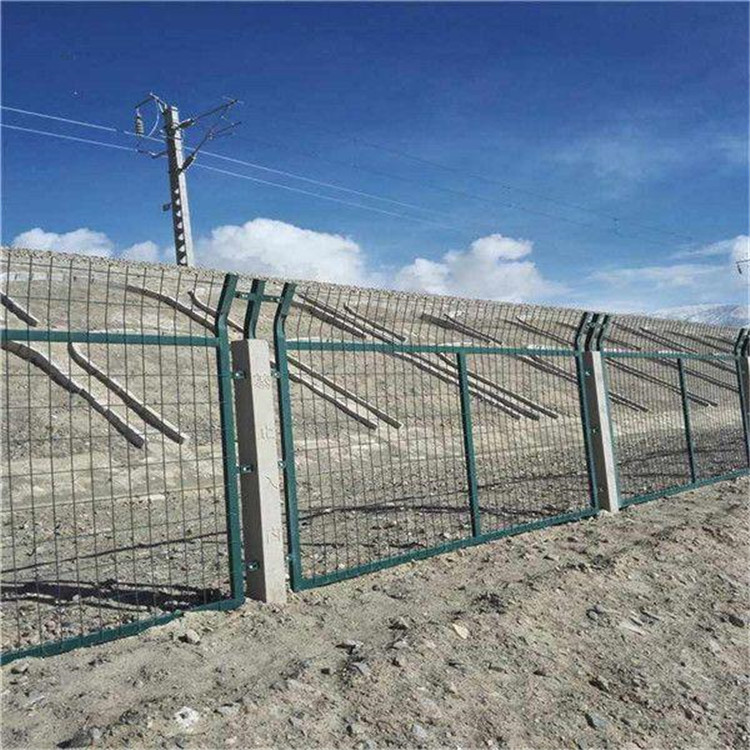 鐵路防護(hù)柵欄又叫鐵路隔離柵、鐵路防護(hù)網(wǎng),鐵路防護(hù)柵欄是金屬網(wǎng)片防護(hù)柵欄的樣式之一,鐵路橋下防護(hù)柵欄是指高鐵橋下的隔離防護(hù)柵欄。主要作用橋墩安全,防止行人、車輛穿越,保障橋墩安全的作用,防護(hù)柵欄的結(jié)構(gòu)是由金屬網(wǎng)片、鋼筋混凝土立柱組成。