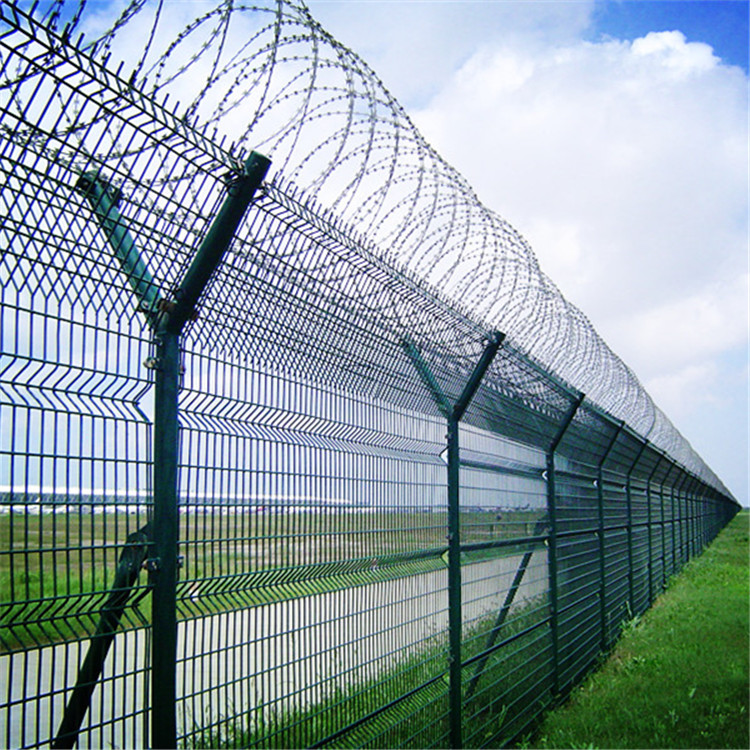 機場圍界的用途和特點,“Y型安全防護護網(wǎng)”,由Y型支架立拄,加強型焊接片網(wǎng),安全防盜銜接件和熱鍍鋅刀片剌網(wǎng)構(gòu)成,是強度和安全防護性級別很高的圍界護欄網(wǎng)商品。被廣泛應用在機場、軍事基地等高安全場所。這種圍界的杰出特色即是漂亮有用、安全性高、防攀爬才能好,網(wǎng)體銜接方法選用特制sbs緊扣件,有用避免人為的破壞性拆卸,橫向四道折彎加強筋,使網(wǎng)面強度明顯添加。