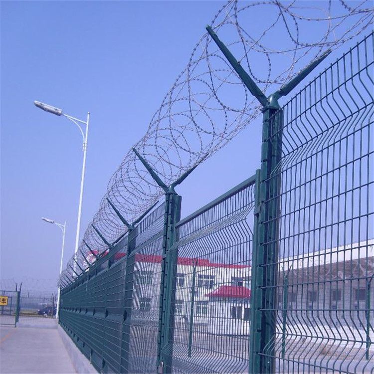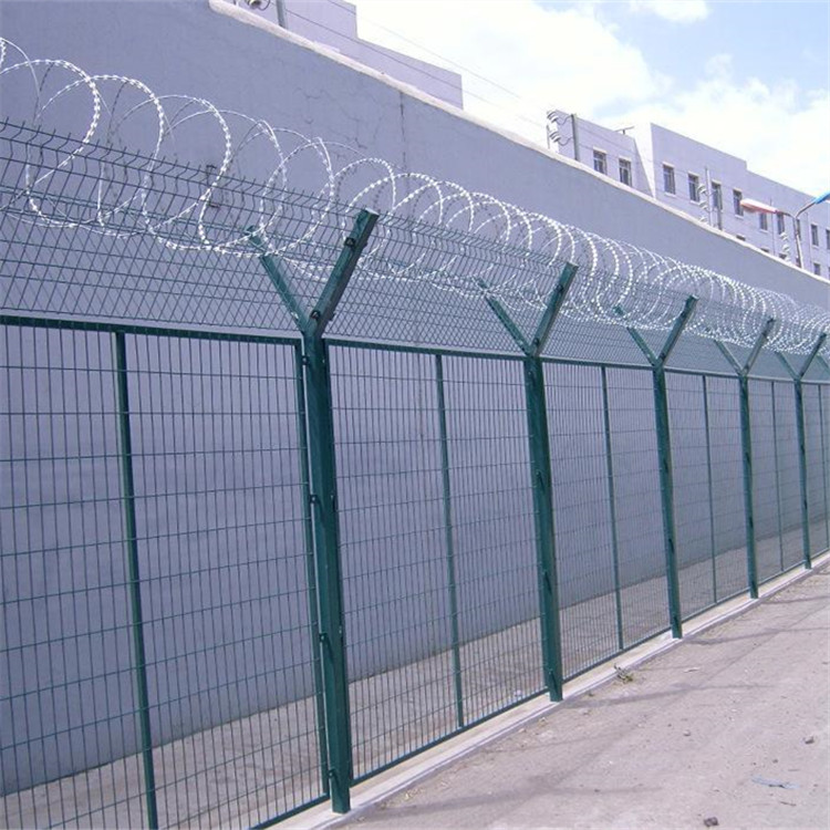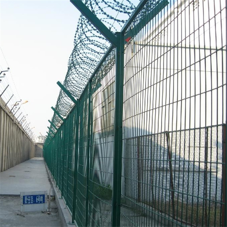 監(jiān)獄鋼網(wǎng)墻又稱作“Y型安全防御護(hù)網(wǎng)”,是由V型支架立柱,加強(qiáng)型焊接片網(wǎng),安全防盜連接件和熱鍍鋅刀片刺籠組成強(qiáng)度和安全防御性級(jí)別很高。近年來,被廣泛應(yīng)用在監(jiān)獄,軍事基地等高安全場所。在監(jiān)獄鋼網(wǎng)墻頂部加裝刀片剌絲、刀片剌繩后又很好的增強(qiáng)了安全防護(hù)性能。采用電鍍、熱鍍、噴塑、浸塑等防腐形式,具有很好的抗老化抗曬、耐候等特點(diǎn)。產(chǎn)品造型美觀、花色多樣,既起到圍欄作用,又起到美化作用。由于具有安全性高、防攀爬能力好網(wǎng)片連接方式采用特制sbs緊扣件,有效防止人為的破壞性拆卸橫向四道折彎加強(qiáng)筋,使網(wǎng)面強(qiáng)度顯著增加。